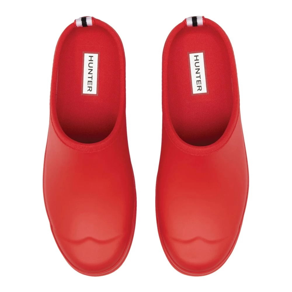 The slip-on Women’s PLAY Clog is made from the highest quality natural rubber and set on a flat platformed sole with an updated 100% recycled polyester lining and insole. The 100% waterproof Clog is engineered with over 160-years of Hunter’s all-weather intelligence. Evocative of the bestselling PLAY Boot, this black matte-finished welly clog fatures a streamlined silhouette and an adaptability that lends itself to being worn indoors for occupational uses such as nursing and in the kitchen, or outside for the warmer months of the year.