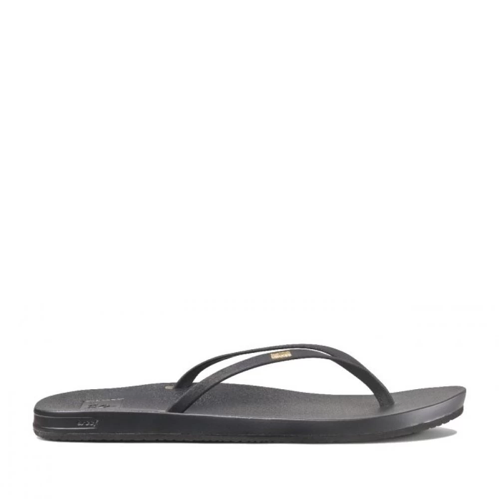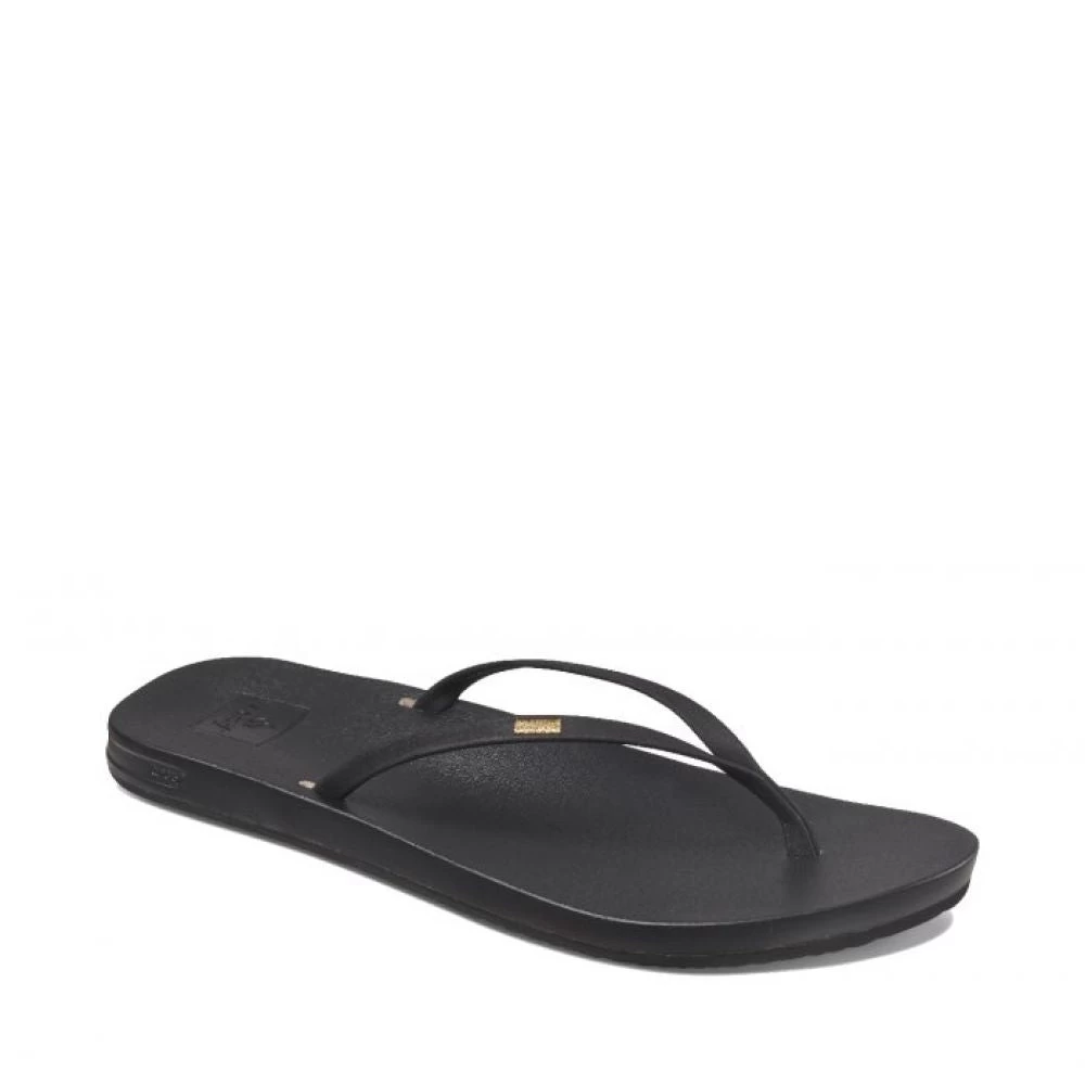 A delicate embroidered gold detail and slim straps transform the classic Reef Bounce Cushion Slim in Black flip flops. Just as comfy, a touch more chic. With a vegan leather strap, high-energy rebound footbed and anatomical arch support.