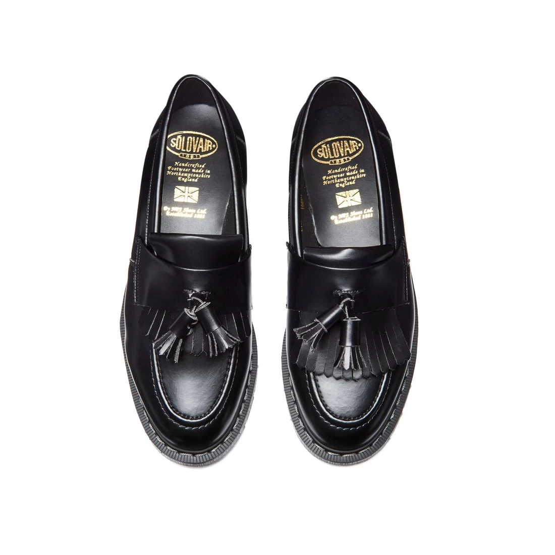 British made, the Solovair Tassel Loafer in Black Hi-Shine is amongst the best quality footwear in the world. Combining over 130 years of traditional craftsmanship and tooling while using the latest technology and materials.